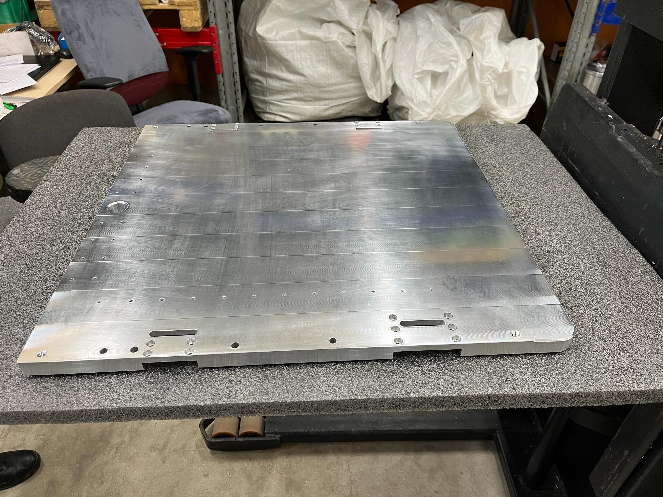 Освоена высокоточная технология обработки плит с высокими показателями точности, плоскостности и качества поверхности. Удалось достичь на плите габаритов 600х650 и при толщине 8 мм отклонение от плоскостности не более 0,1 мм по всей поверхности, шероховатость Ra < 0,4.