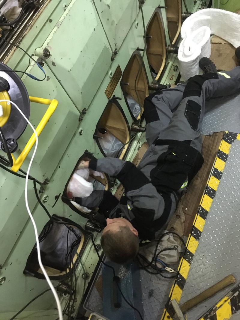 Термообработка шейки коленчатого вала в картере двигателя на борту судна т/х "НЕФРИТ".